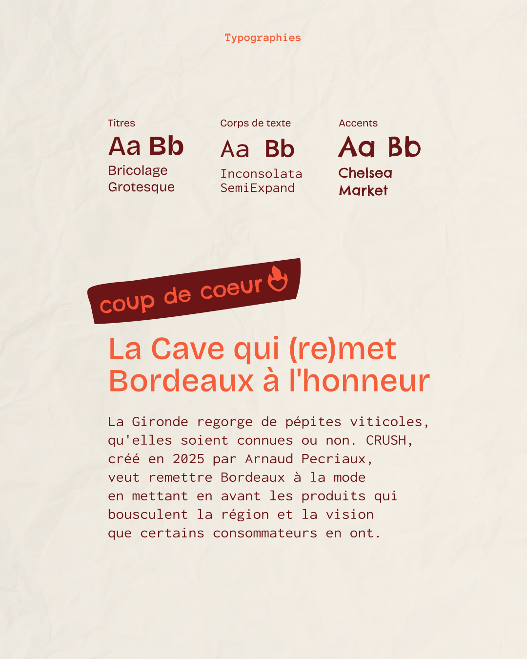 Arnaud ouvre CRUSH, une cave nouvelle génération qui rend le vin accessible, vivant et chaleureux, surtout à celles et ceux qui pensaient que le Bordeaux, ce n’était pas pour eux.