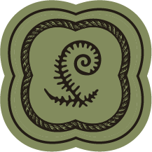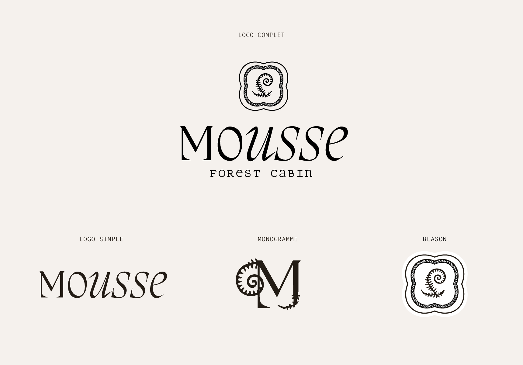 Le logo se décline également en monogramme, reprenant le M orné d'une fougère. Ce détail fait écho au blason et permet de lier l'ensemble de la suite de logos.